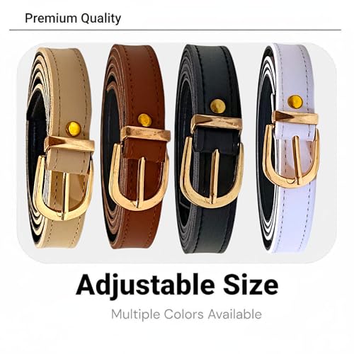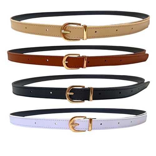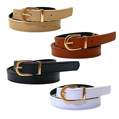 Generic - حزام حريمي رفيع – طقم 4 أحزمة كاجوال كلاسيك ب Buckle ذهبية – ألوان متعددة – مناسب للجينز والفساتين والقمصان اليومية
