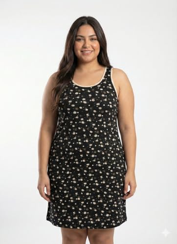 Generic - فستان نسائي بدون أكمام، أسود مع نقاط ذهبية، تصميم كاجوال قصير