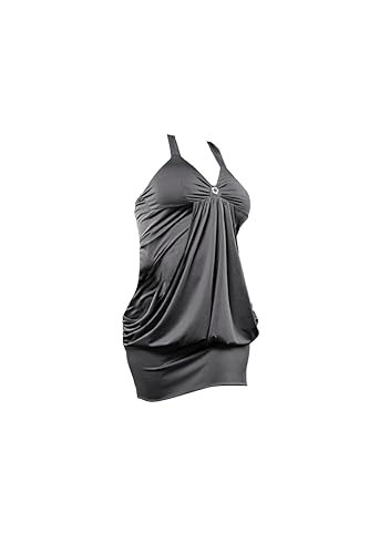 Dadoush - قميص نوم نسائي قصير بدون اكمام - فستان نوم لانجري للنساء (رمادي, S)