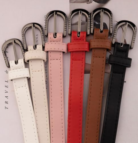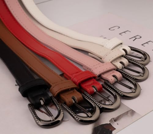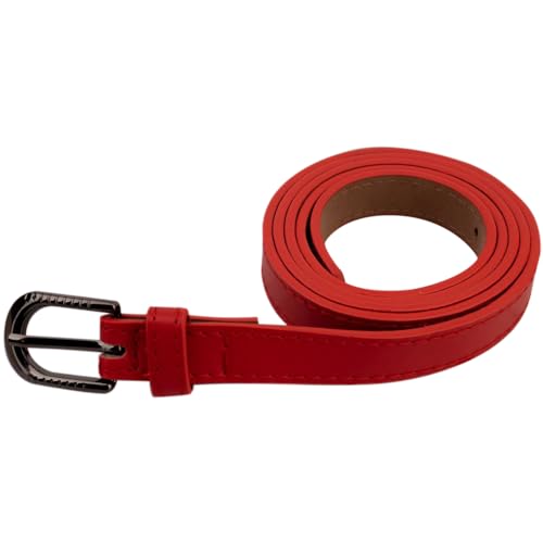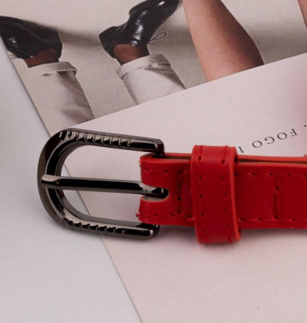 Generic - حزام جلد حريمي رفيع سليم مع ابزيم ذهبي أحمر للنساء