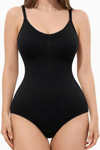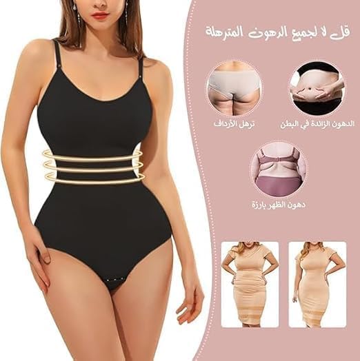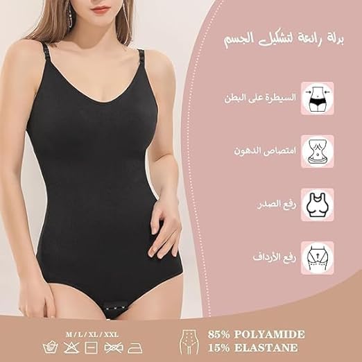Generic - بدلة مشد للجسم من قماش مطاطي مع وسادة صدر للتحكم في الخصر وتحديد الأرداف مع فتحة في منطقة الحوض للنساء، لون أسود، مقاس اكس لارج (XL)، قطعة واحدة