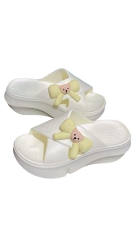 Generic - شباشب نسائية بمنصة بيضاء مع زينة دب أصفر، أحذية منزلية مريحة مقاس ٣٨/٣٩