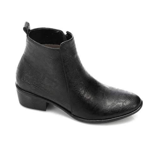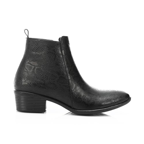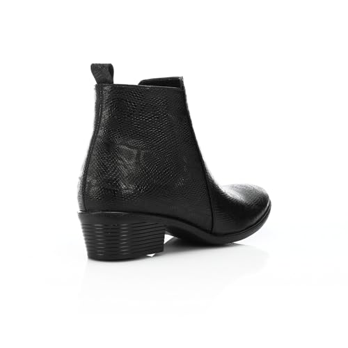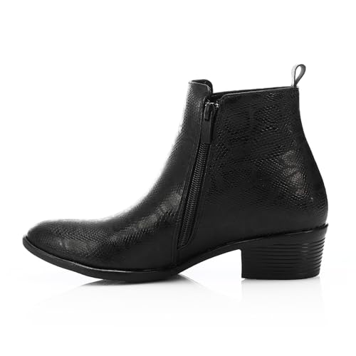 Xo Style - بوت بطول الكاحل بطبعة جلد الثعبان للنساء - ذهبي ميتاليك - كعب عريض (اسود، EU 39)