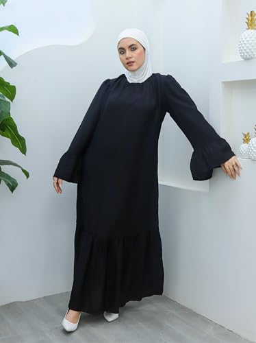 Generic - فستان نسائي كتان إسباني واسع – موديل 0108 - لون اسود