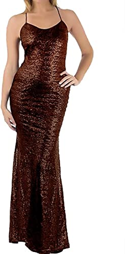 Generic - فستان مزين بالترتر للمناسبات الخاصة للنساء، لون بني