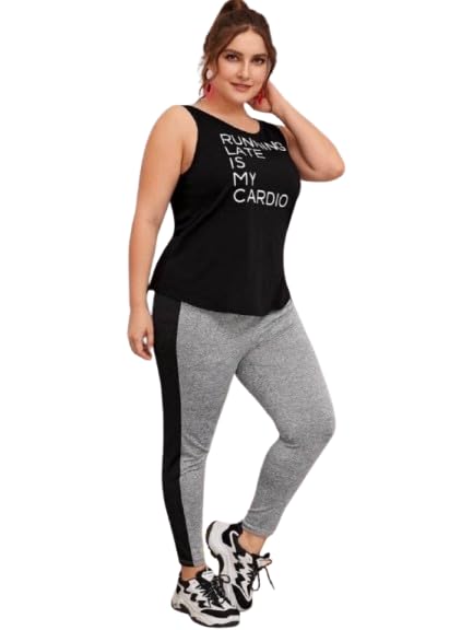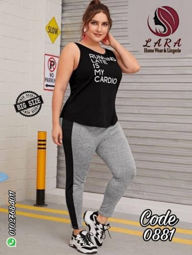 Generic - طقم ملابس رياضية نسائي، تي شيرت أسود مع بنطلون رياضي رمادي، مقاس كبير