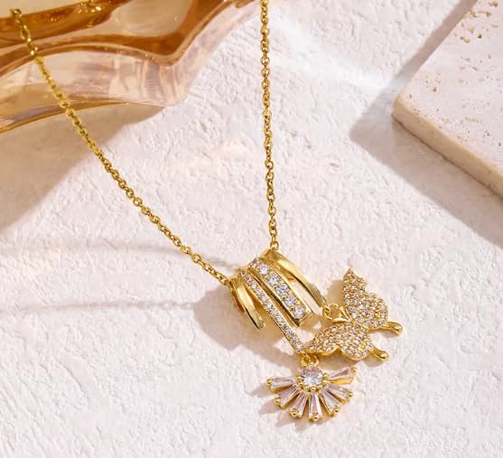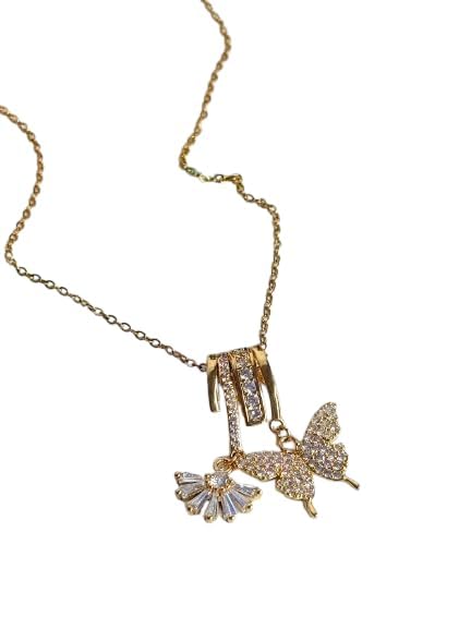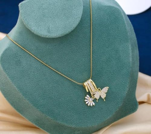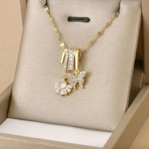 Generic - سلسلة نسائية استانلس استيل ذهبي مع قلادة فراشة أنيقة مقاومة للصدأ والماء للاستخدام اليومي والمناسبات الخاصة