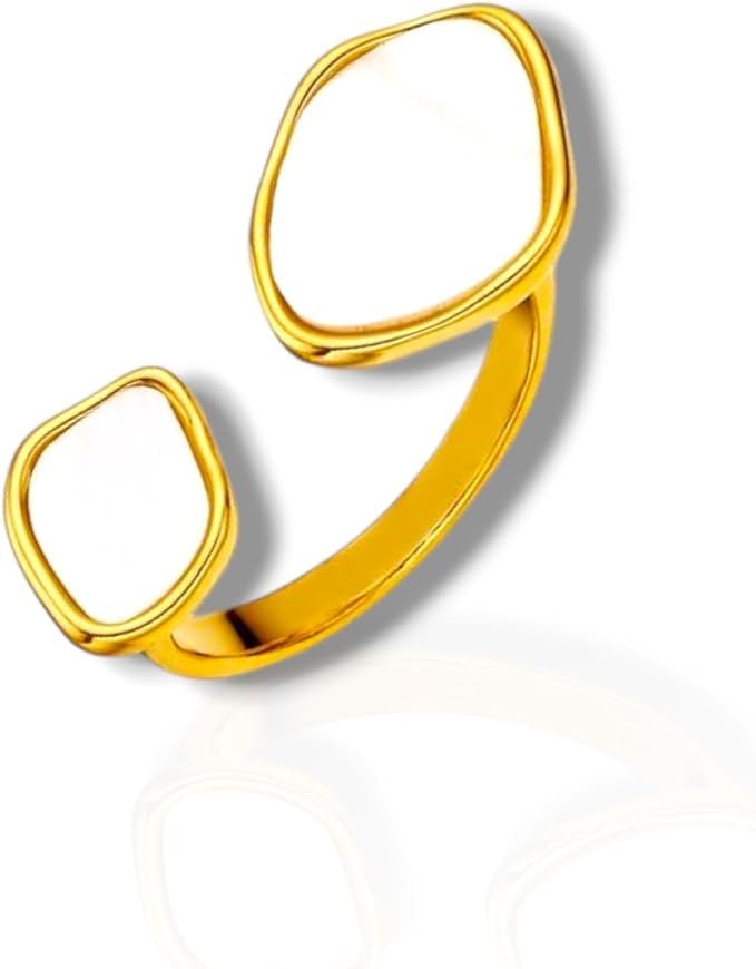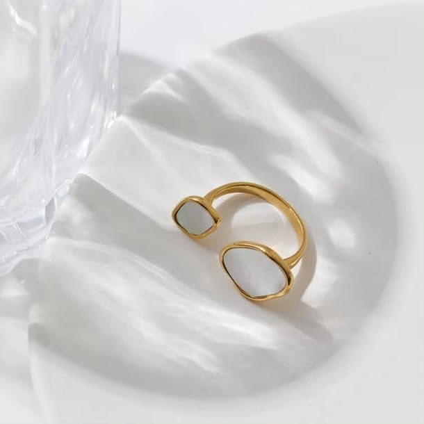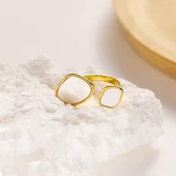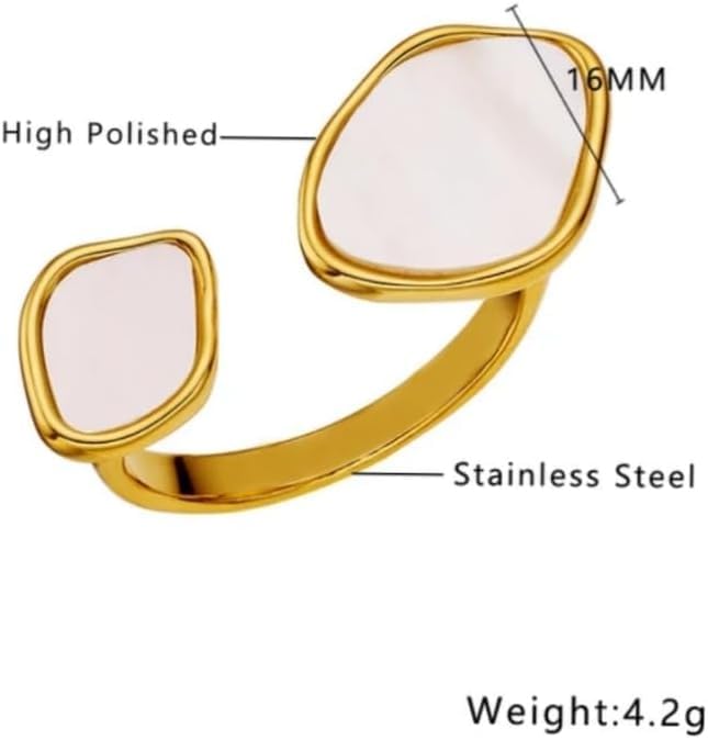 Generic - خاتم نسائي من الفولاذ المقاوم للصدأ دهبي و احجار بيضاء الصدف الابيض على شكل هندسي غير منتظم الارتداء اليومي