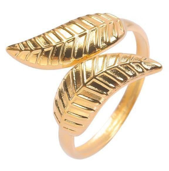 Generic - خاتم نسائي من الستانلس ستيل بتصميم ورق الشجر – لمسة طبيعية أنيقة