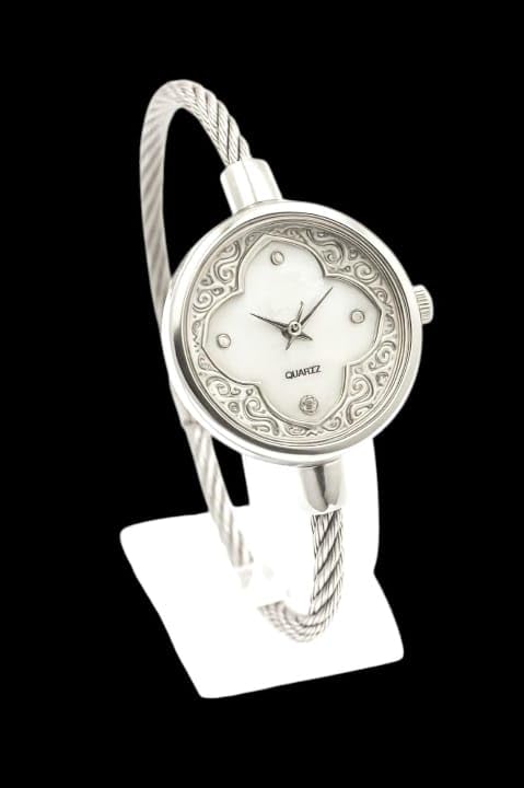 Generic - ساعة نسائية بعرض أنالوج، قرص وسوار فضي موديل جنف-cl-w
