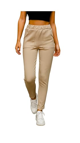 Bianco Cotton - بنطلون مريح قابل للتمدد للنساء بقصة ضيقة مدببة، بنطلون كاجوال خفيف الوزن