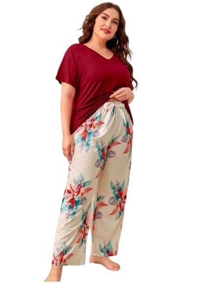 Generic - بيجامة صيفي كاجوال للنساء قطعتين بيج سايز قطن كود 2033لون احمر