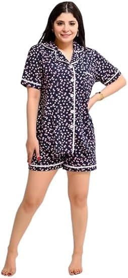 Generic - بيجامة حريمي ترينج صيفي يتكون من 2 قطع تيشريت و شورت - بروسومات مختلفة ومصممة خصيصا لتوفير الراحة والانتعاش (كحلي, مقاس_XL)