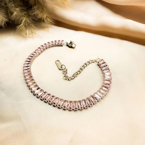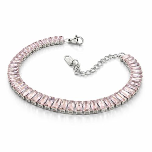 Generic - سوار تنس نسائي فاخر مرصع بأحجار الزركونيا المكعبة قصة باجيت، سلسلة يد مطلية بالفضة قابلة للتعديل بمشبك لوبستر متين، مجوهرات كريستالية عصرية مثالية للهدايا والمناسبات والحفلات (وردي)