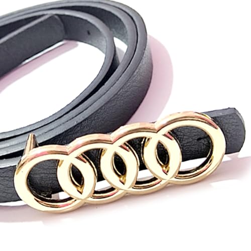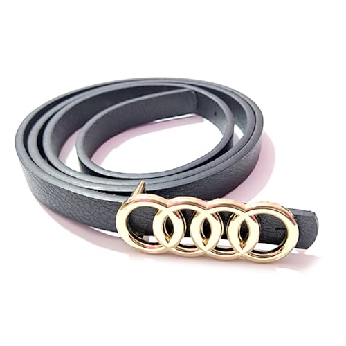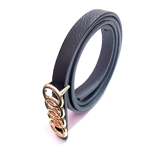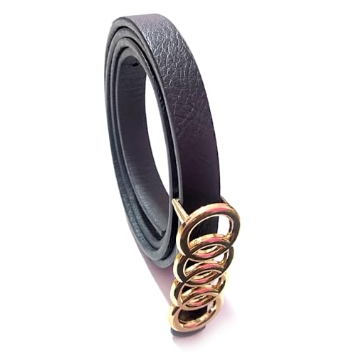 Generic - حزام جلد رفيع للنساء، ابزيم معدن لون ذهبي، جلد أسود، 01202611001، 1 قطعة