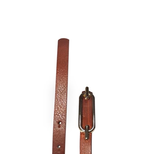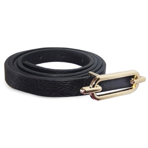 Generic - حزام جلد رفيع للنساء، ابزيم معدن لون ذهبي، جلد أسود، 01202611005، 1 قطعة