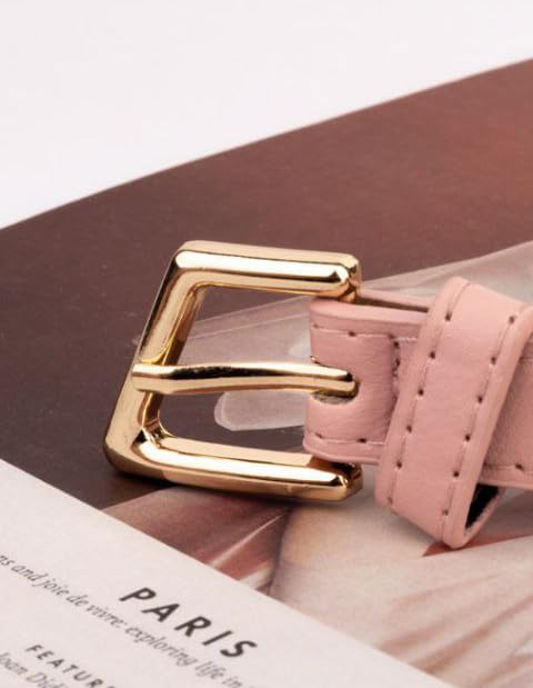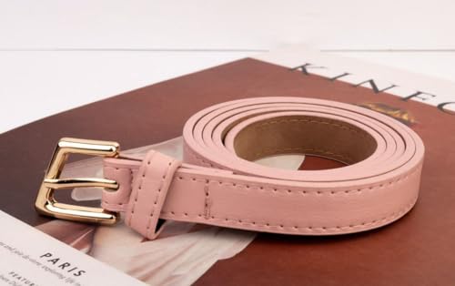 Generic - حزام جلد رفيع للنساء، ذهبي بينك 1030-04