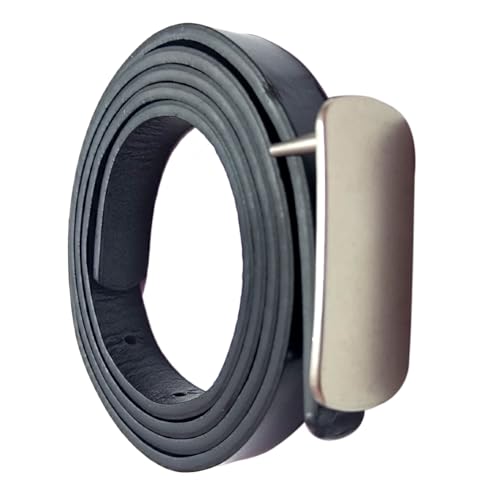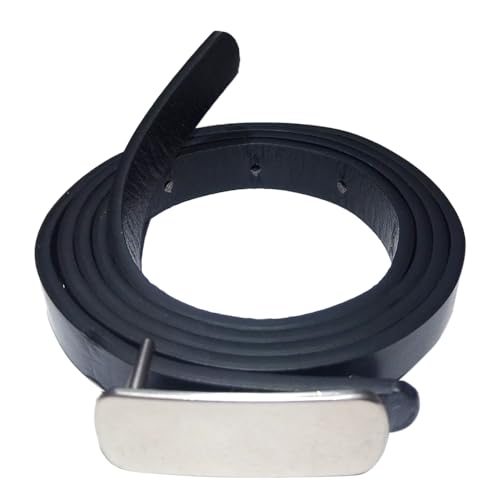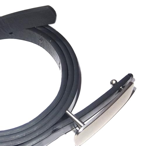 Generic - حزام جلد رفيع للنساء، ابزيم معدن لون فضي، جلد أسود، 01202611003، 1 قطعة