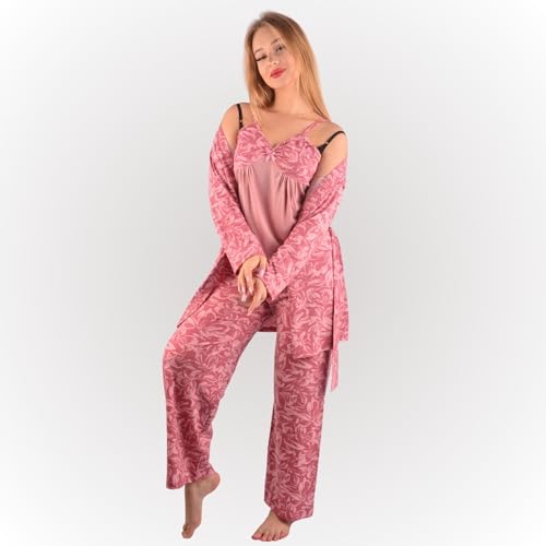 بيجامة حريمي ثلاث قطع قطن