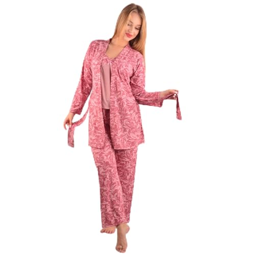 Generic - بيجاما نسائية ثلاث قطع، نقشة زهور، أصفر وأزرق، كم طويل مع حمالة وبنطال (كشمير, XL)