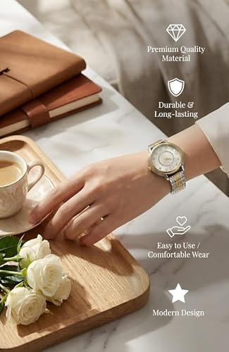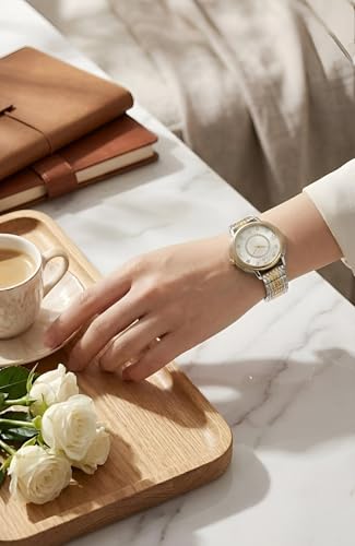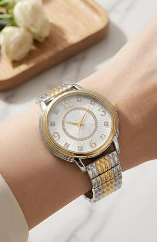 Generic - ساعة للنساء - ساعة كلاسيكية انيقة بسوار معدني بلونين ومينا كريستال لامع، مناسبة للمناسبات وتقديم الهدايا