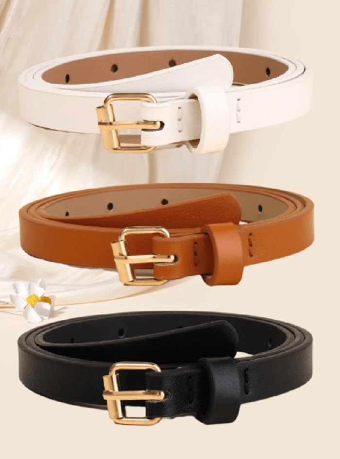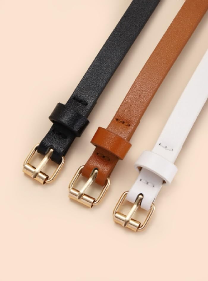 Generic - طقم حزام بابزيم ثلاثي الحلقات للنساء من جلد البولي يوريثين بعرض 3 سم من 3 قطع بلون اسود وابيض وبني، مقاس واحد