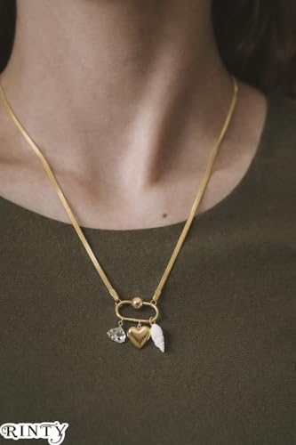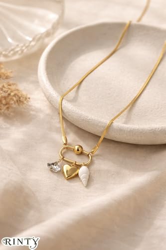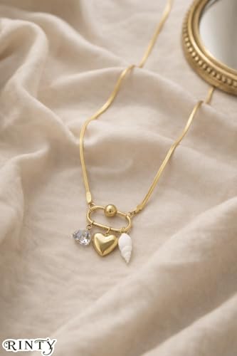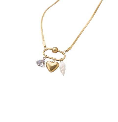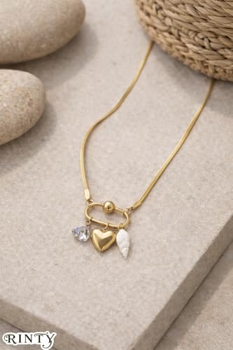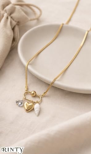 Generic - سلسلة حريمى ستيل تركي ذهبية مع قلادة قلب وصدفة وكريستال