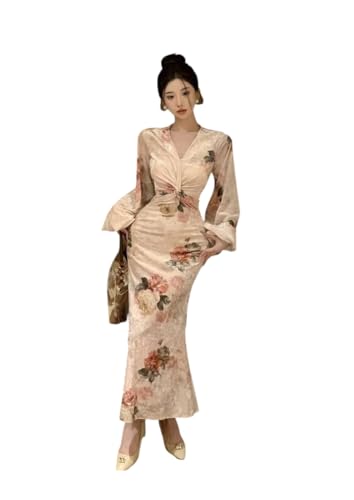 Generic - لانجري دريس قطيفة طويل أكمام قصيرة مزين بشراشيب بفتحة من الجانب للنساء ( وان سايز يلبس لحد 85 )