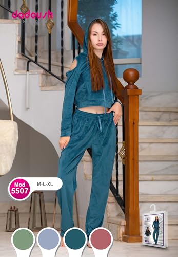 Dadoush - طقم بيجامة نسائي مخمل مكون من قطعتين، تصميم عصري مريح - بيجامة شتوية حريمي قطعتين بلوزة وبنطلون لمظهر أنيق ومميز