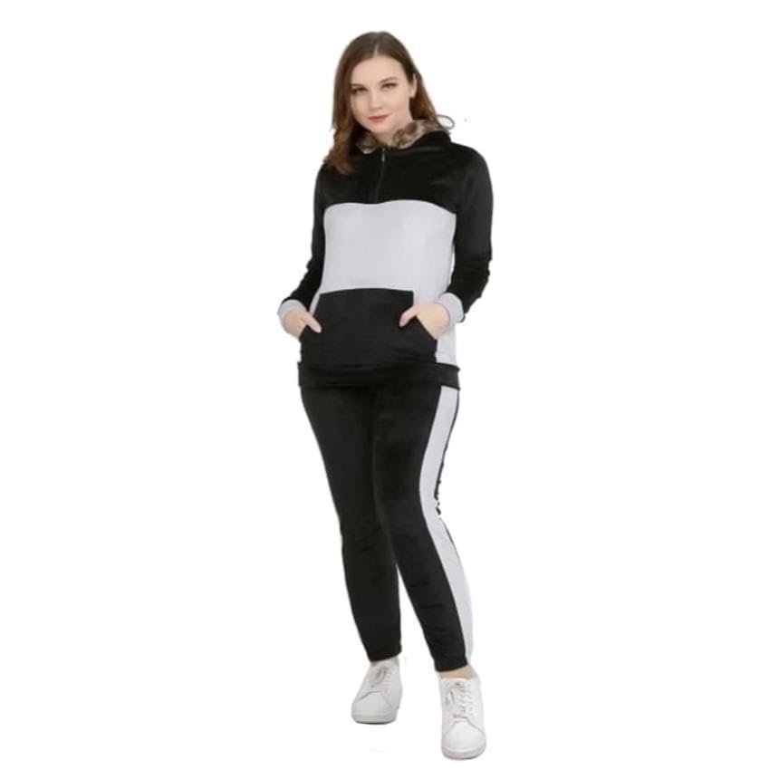 Generic - بيجامة نسائى مخمل مزينة بفرو (اسود في جراي, XXL)، مريح