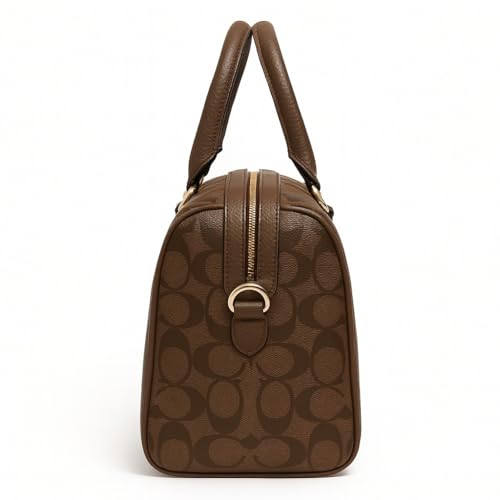 حقيبة يد نسائية كلاسيكية فاخرة، جلد صناعي منقوش، متوفرة باللون الأسود والبني، مع تفاصيل ذهبية