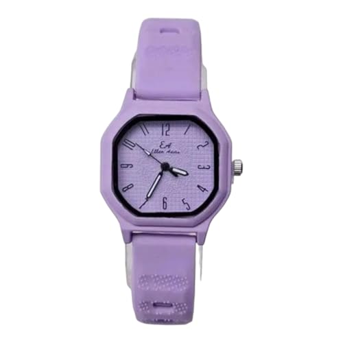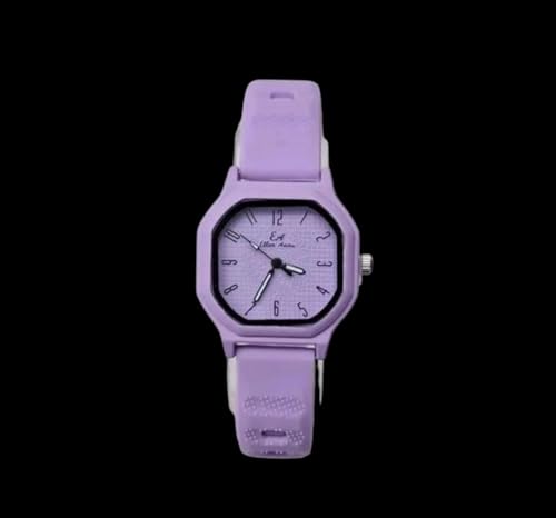 Generic - ساعة يد نسائية بإطار ثماني الشكل، سوار سيليكون، لون بنفسجي