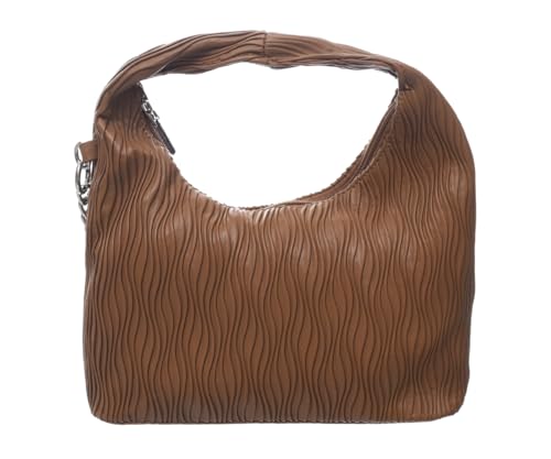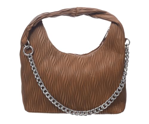 شنطة يد نسائية من الجلد المنسوج بتصميم مموج مع مقبض سلسلة فضي وسوستة للاغلاق