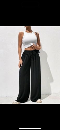 Generic - سروال رياضي بارجل واسعة للنساء، سروال اسود عالي الخصر برباط سحب، ملابس مريحة كاجوال عصرية للتمارين الرياضية