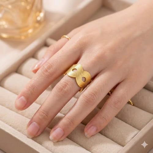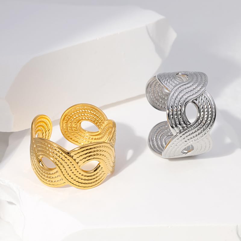 Generic - Women's Wide Open Stainless Steel Ring, Simple Adjustable Cuban Link Ring, Finger Jewelry