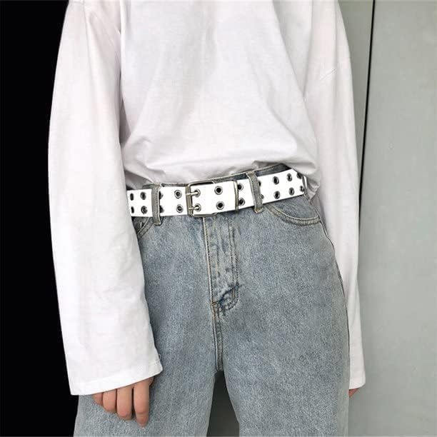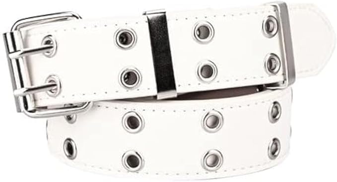 Generic - حزام حريمي أبيض عريض بعيون معدنية ذهبية – جلد صناعي – ستايل كاجوال عصري – قابل للتعديل