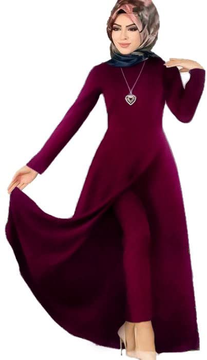 Generic - فستان طويل بفتحة من الامام مع بنطلون بلون نبيذي للنساء