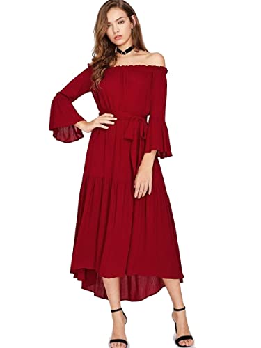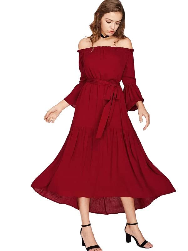 Generic - فستان شيفون نسائي مصمم بطيات مميزة باللون الاحمر