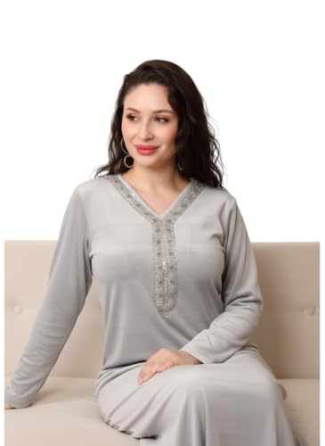 Generic - عباية شتوي قطيفة بتطريز يدوي بسيط للنساء