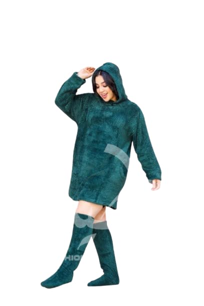 Generic - بلانكت شتوي نسائي مع جوارب طويلة، أخضر زمردي، مقاس كبير، مريح ودافئ