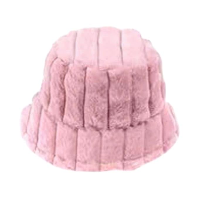 Generic - قبعة باكيت شتوية من الفرو المضلع، وردي، للنساء