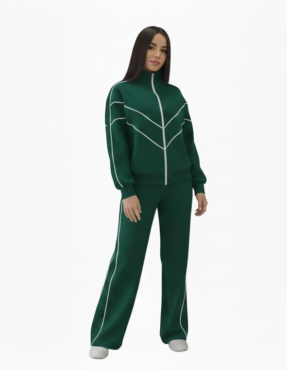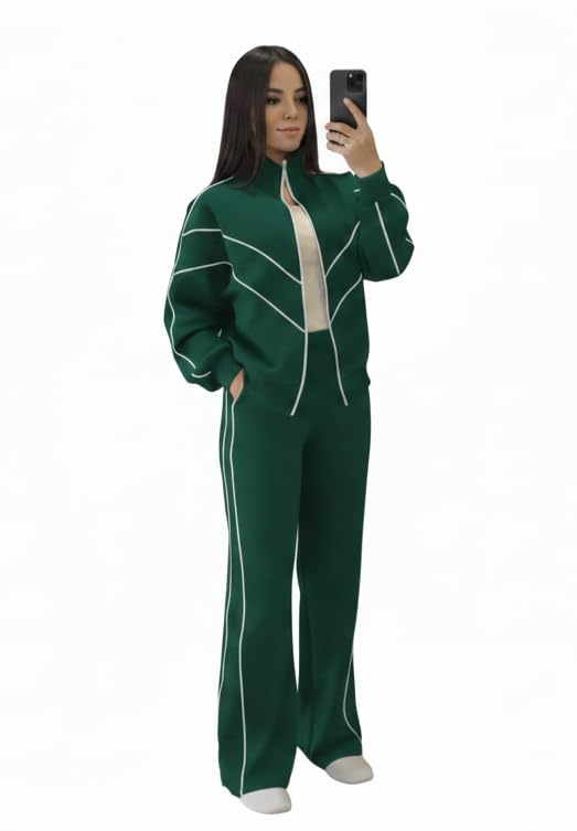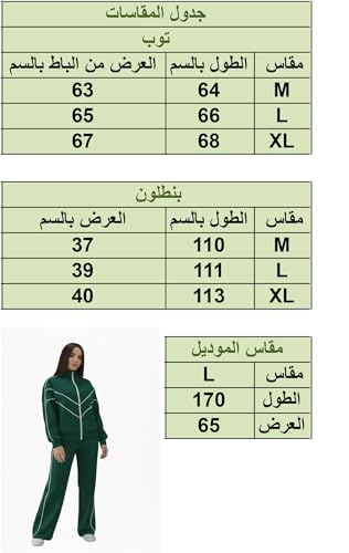 Generic - طقم رياضي اخضر شتوي نسائي عصري مريح من القطن الميلتون للتدفئة من برودة الشتاء والاستخدام اليومي – توب بسوستة وبنطلون عملي بجيوب يمكن تنسيقهما مع قطع أخرى
