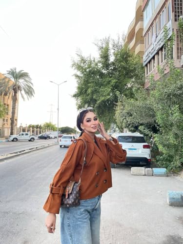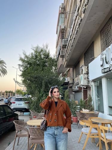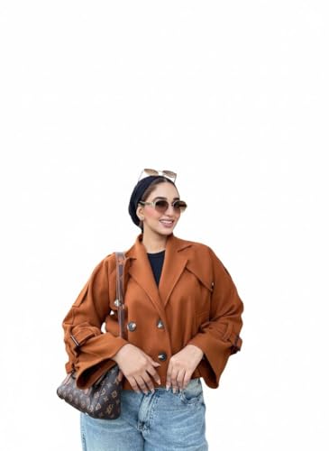 Generic - جاكيت حريمي شتوي هاي وسط جوخ إسباني – تصميم أنيق مزدوج الأزرار جاكيت كاجوال رسمي وان سايزيناسب حتي 85 ك