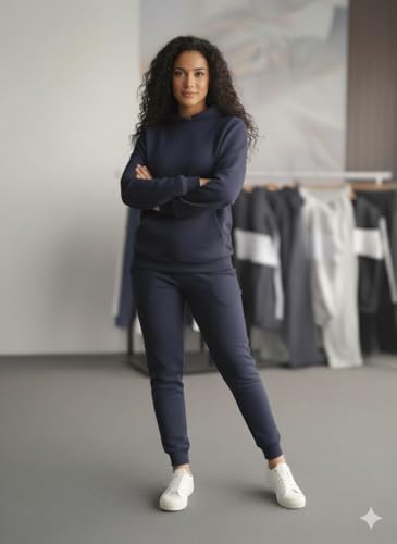 Generic - طقم رياضي شتوي حريمي بقلنسوة وسروال - تصميم عصري بلون واحد - خامة ناعمة وجيوب للتدفئة والراحة اليومية