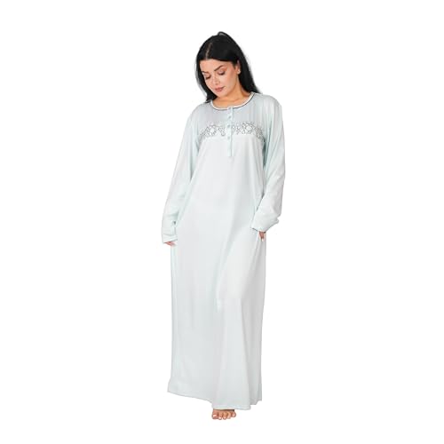 Dadoush - قميص نوم نسائي شتوي طويل بأكمام طويلة، قطن، بتطريز دانتيل