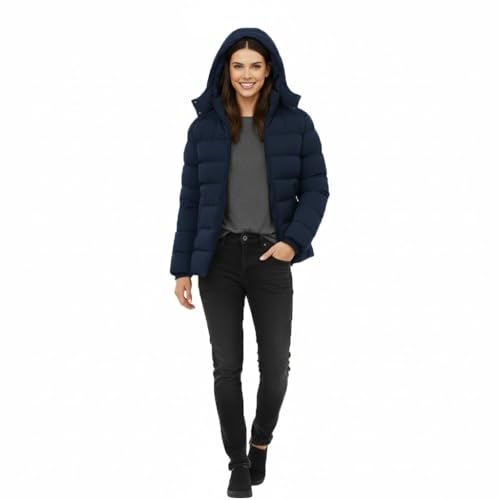Generic - جاكيت شتوي منتفخ للنساء، معطف بغطاء للراس بلون ازرق كحلي، ملابس خارجية مبطنة دافئة
