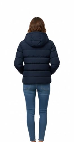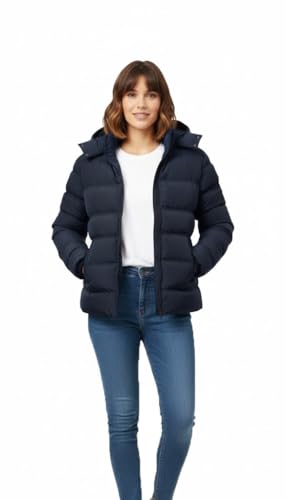 Generic - جاكيت شتوي مبطن للنساء بلون أزرق كحلي مع غطاء للرأس كاجوال دافئ