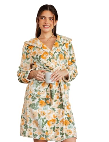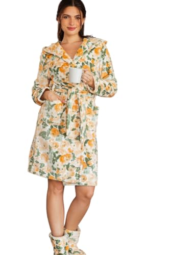 Generic - روب شتوي قطيفة كابتشو بجيوب و لكلوك بتصميم زهور للنساء