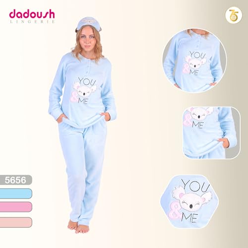 Dadoush - بيجامة حريمي شتوي من الفرو الناعم بتصميم انيق - طقم بيجامة نسائي باكمام طويلة