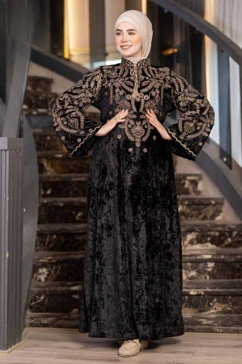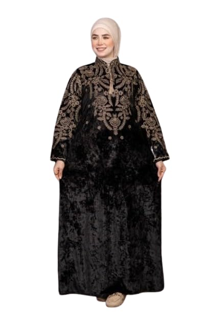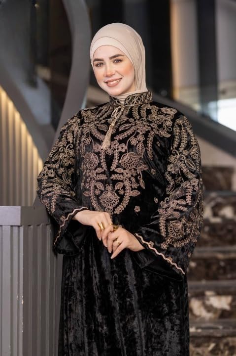Generic - عباية قطيفة شتوي نسائية مطرزة للاستقبال والخروج – خامة قطيفة هايدي ناعمة – تصميم واسع ومريح – مقاس 1 (60–85 كجم) | مقاس 2 (85–120 كجم)